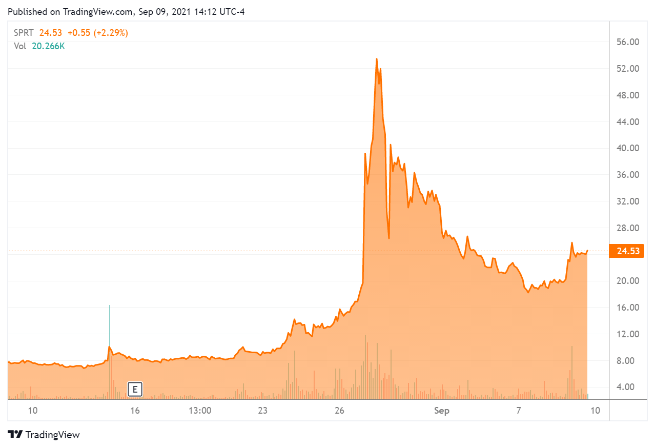 A high percentage of insider ownership can be a sign of company health. Sprt surged by more than 50% over the past few hours, becoming the best performing stock in the market.